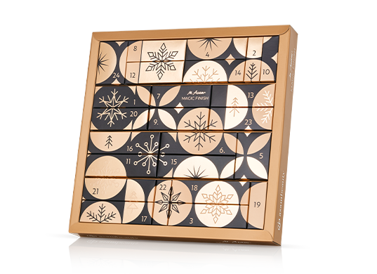 In dem zauberhaften braunen und beigen Design des Kalenders verstecken sich exklusive Magic Finish Produkte. In 24 Türchen findet ihr Make-up-Produkte, limitierte Editionen und Accessoires in Original- oder Probiergröße. Der Wert des Adventskalenders beträgt 158 Euro, wobei ihr derzeit 64,99 dafür zahlt.